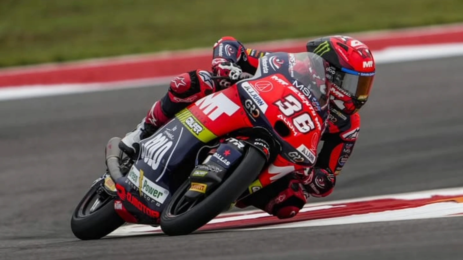 KTM Tech3 rider Perrone didn’t make any moves in the first half of the race, but stayed tucked in behind the leading trio, while the gap between him and Fernandez had shrunk to 1.6 seconds by the halfway mark.