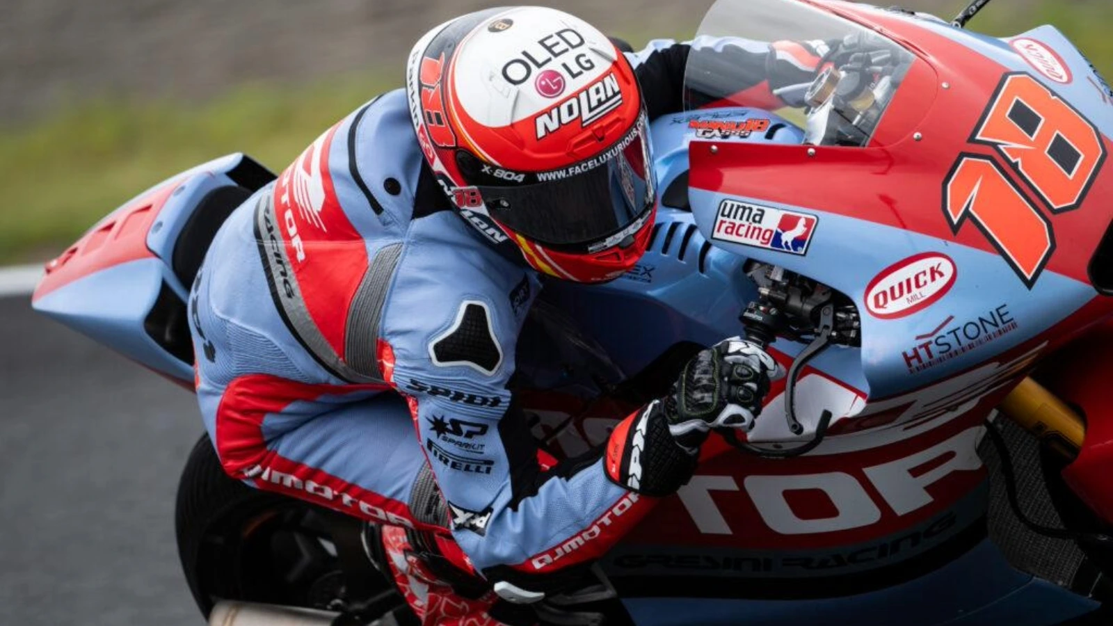 Most of the riders on the grid elected for the rain tyres, with the home hero Ai Ogura one of the exceptions as he headed out onto the second sighting lap on slicks.